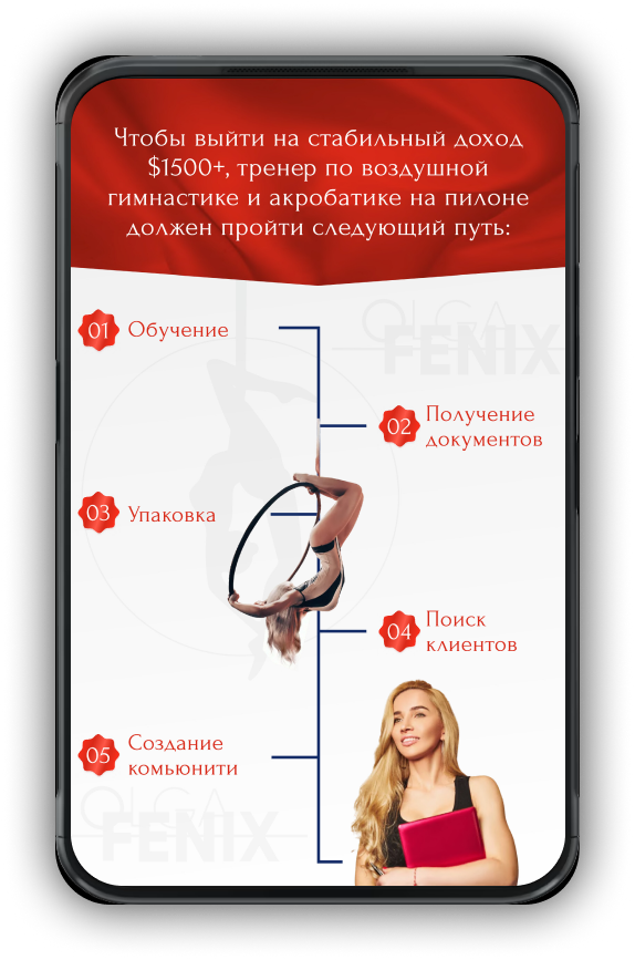 «Дорожная карта «Как тренеру по воздушной гимнастике и акробатике на пилоне выйти на доход $1500+».